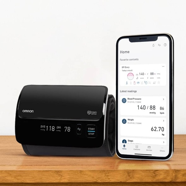 Dùng ứng dụng OMRON connect và Bluetooth để cập nhật, theo dõi và phân tích dữ liệu sức khỏe tim mạch tốt hơn.