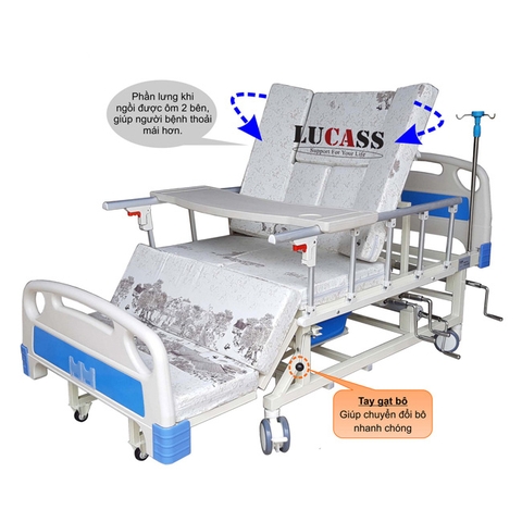 Giường bệnh nhân đa năng Lucass GB-106 là chiếc giường y tế có 4 tay quay và nhiều chức năng nhất trong các dòng giường bệnh nhân tay quay nên rất được ưa chuộng cho công tác chăm sóc và hộ trợ cho bệnh nhân, cho người già.Giường được thiết kế chắn chắn và có độ thẩm mỹ cao, được sử dụng nhiều trong các bệnh viện, nhà thương, phòng khám cũng như được nhiều người mua về sử dụng để tiện lợi hơn trong việc chăm sóc người nhà của mình.